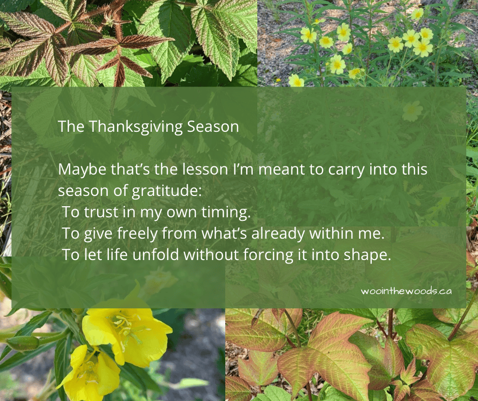 As you move through this Thanksgiving season, I’d love to know: what has the land around you been whispering lately? Maybe it’s a tree that’s caught your attention, a bird that seems to appear when you need it most, or a small plant you’ve never noticed before.
