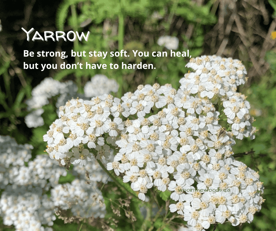 Yarrow – its feathery leaves standing guard at the edge of the path like a natural protector. Yarrow’s been known for centuries as a healer of wounds and a symbol of resilience. I can’t help but wonder if its message is also for me: Be strong, but stay soft. You can heal, but you don’t have to harden.